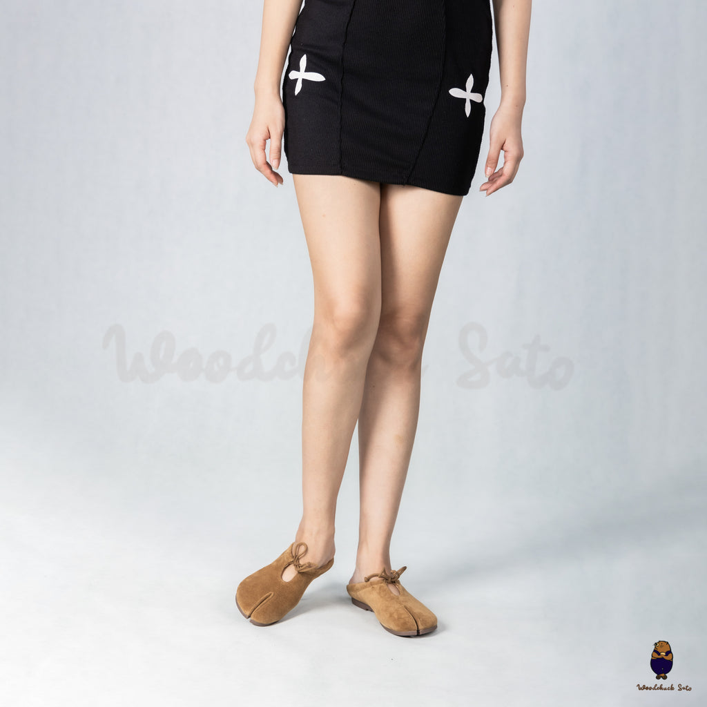 Embrace subtle sophistication with these handcrafted suede Tabi Mules, featuring the distinctive split-toe design rooted in traditional Japanese craftsmanship. Crafted in a rich chestnut brown suede, these shoes offer a modern silhouette with a lace-up bow and elegant keyhole opening at the top. Designed for everyday ease, the slip-on construction combines style with comfort, making them perfect for both indoor wear and city strolls. The soft leather lining and flexible rubber sole ensure lasting comfort throughout your day.