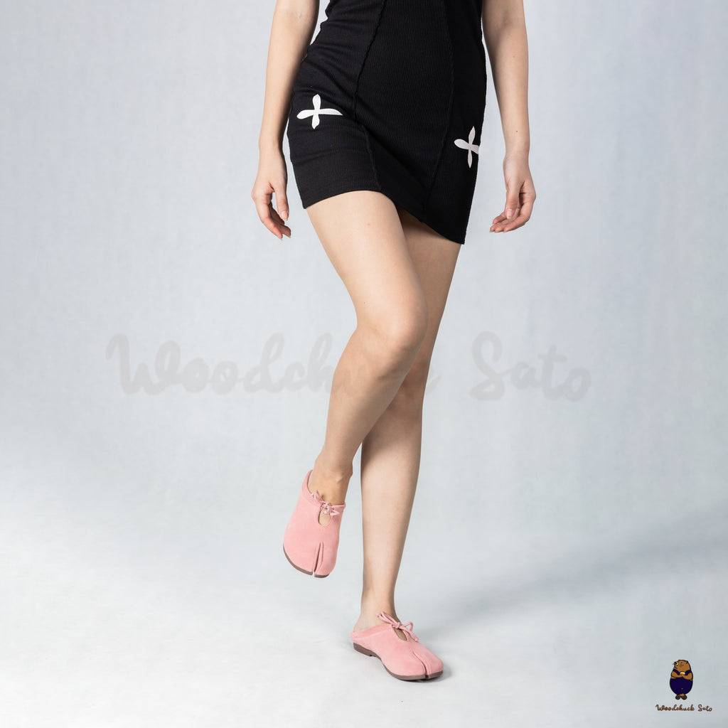 Soft, playful, and refined — these Dusty Pink Suede Tabi Mules by Woodchuck Sato are the perfect blend of comfort and style. Featuring the iconic split-toe design and a delicate bow-tie accent, these slip-on flats bring a touch of charm to your everyday wardrobe. Crafted in smooth suede with a warm pink tone, they’re lined with breathable leather and built on a flexible rubber sole for long-lasting comfort. The keyhole cut-out adds a subtle elegance, making these an easy match for both loungewear and streetwear.