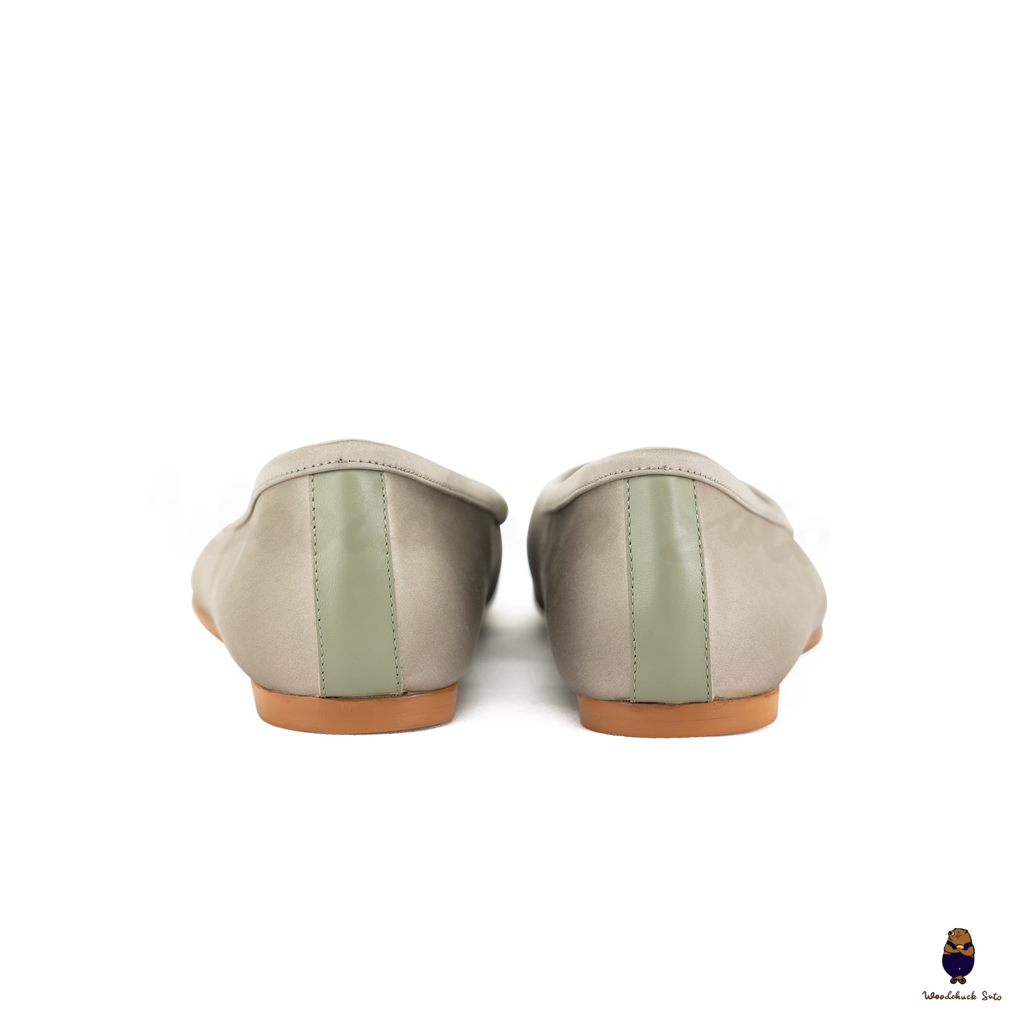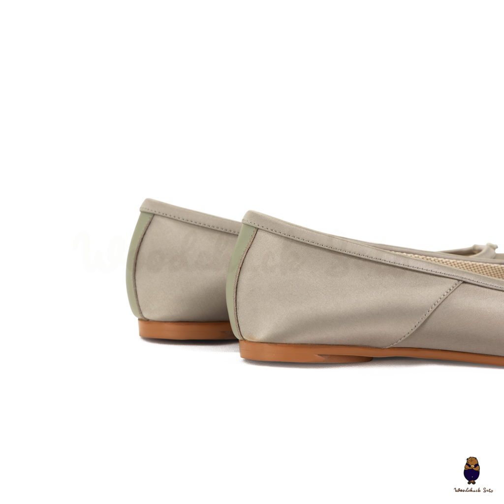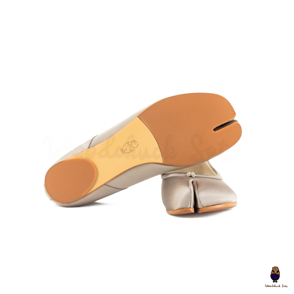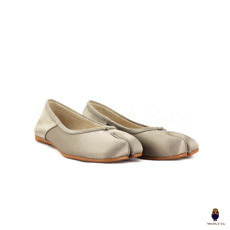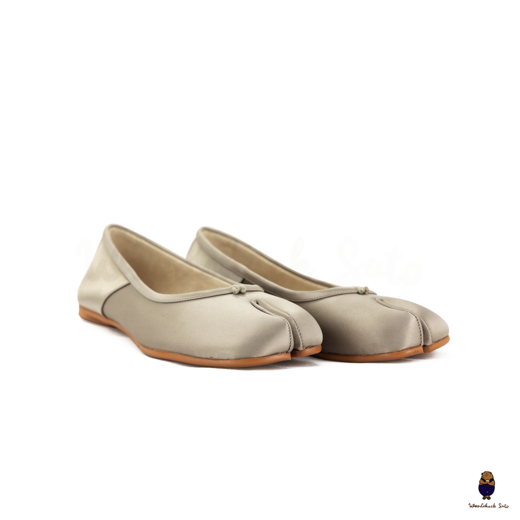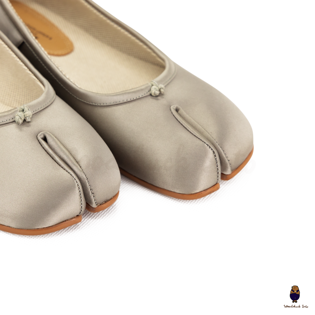 Crafted from luxurious silver gray silk fabric, these Tabi flats offer an elegant update to the signature split-toe silhouette. The soft sheen of the fabric adds a touch of refinement, while the subtle metallic finish catches the light with every step. The delicate bow detail enhances its feminine charm, making it a perfect pairing for both casual and polished outfits. With their soft texture and timeless design, these flats are ideal for those who appreciate minimalist luxury and understated elegance.