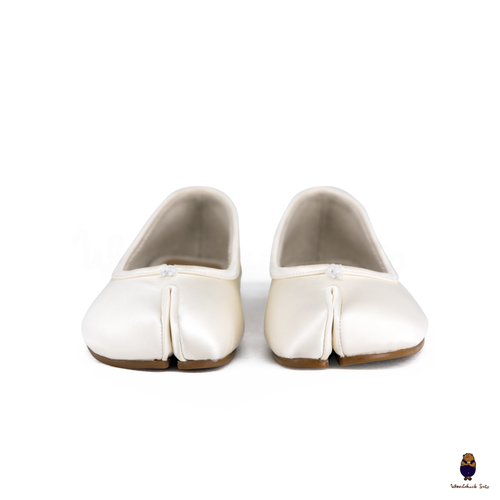 Crafted from smooth pearl white silk fabric, these Tabi flats showcase a clean, timeless design with the signature split-toe silhouette. The soft, understated sheen of the fabric adds a subtle touch of elegance, while the breathable hemp fabric lining ensures comfort for all-day wear. Perfect for pairing with light tones or soft neutrals, these flats offer a refined and versatile addition to any wardrobe. With their classic design and modern appeal, they bring understated luxury to everyday styling.