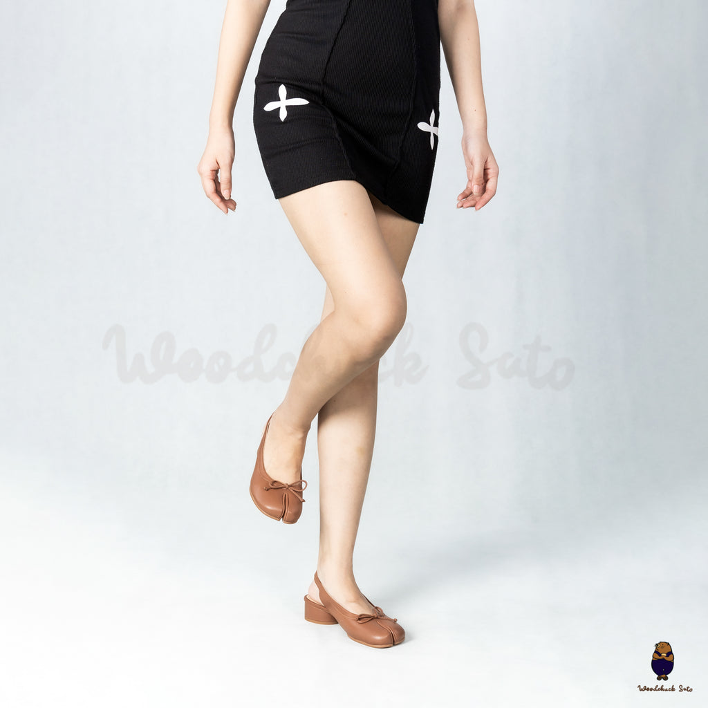 Rooted in earthy warmth, these slingback tabi pumps are crafted from supple brown sheep leather that balances elegance with everyday ease. The signature split-toe design is softened by a neat bow detail, creating a look that feels both classic and approachable. The slingback strap, fitted with a discreet elastic band, ensures a secure yet flexible fit that adapts to your movements. Resting on a low block heel, they offer comfort for long wear while maintaining a polished profile. Whether paired with linen, denim, or tailored looks, this brown shade grounds any outfit with effortless sophistication.