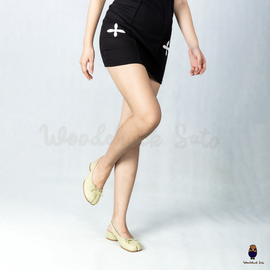 Bring a touch of freshness to your look with these slingback tabi pumps in light green sheep leather. The iconic split-toe silhouette is softened by a delicate bow, blending playful charm with timeless style. The slingback strap is finished with an elastic ruched band, offering flexibility, comfort, and a secure fit throughout the day. A stable low block heel ensures easy wear, while the refreshing light green shade adds a modern accent to any wardrobe — pairing effortlessly with neutrals, whites, and soft pastels.