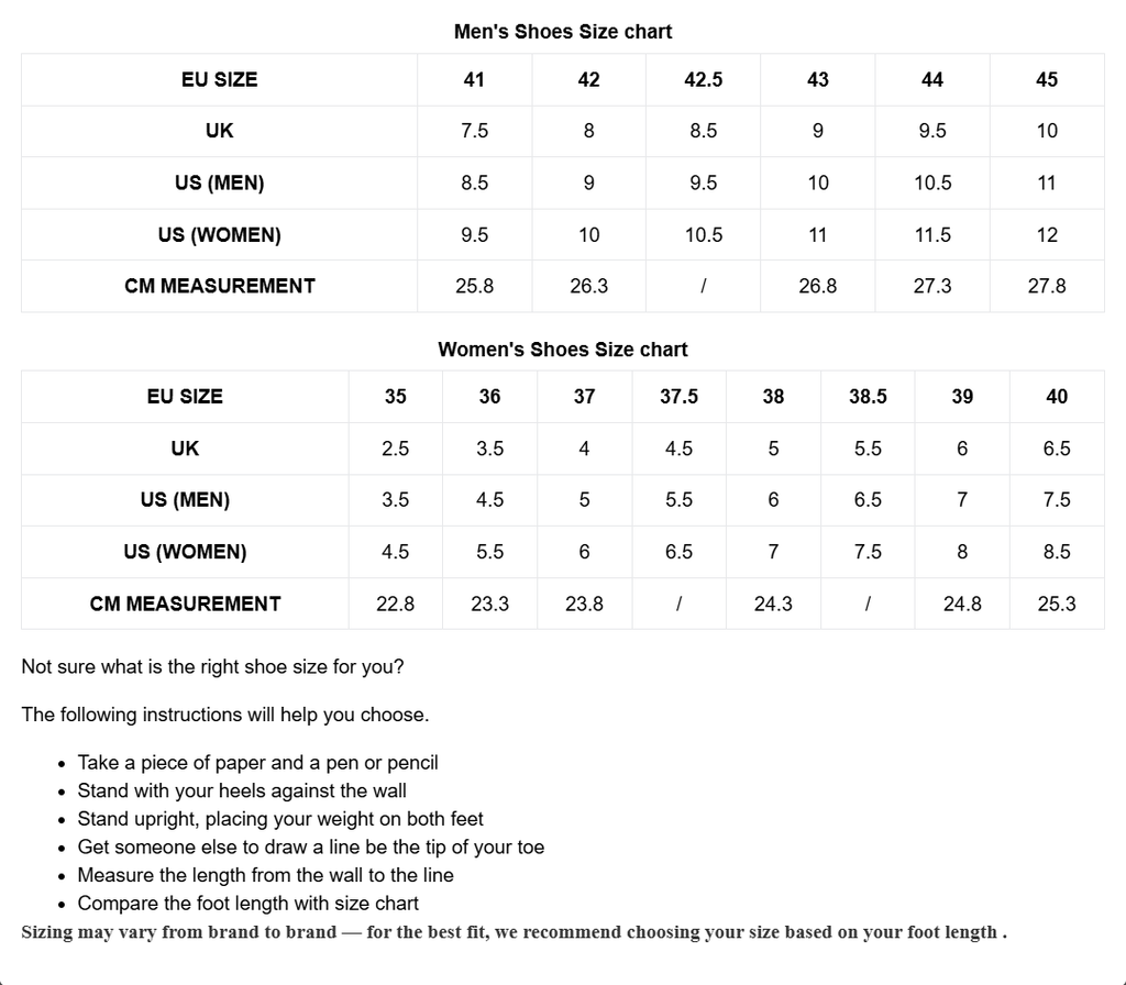 Note: If you have any questions about choosing the right size, feel free to reach out to our customer service team.