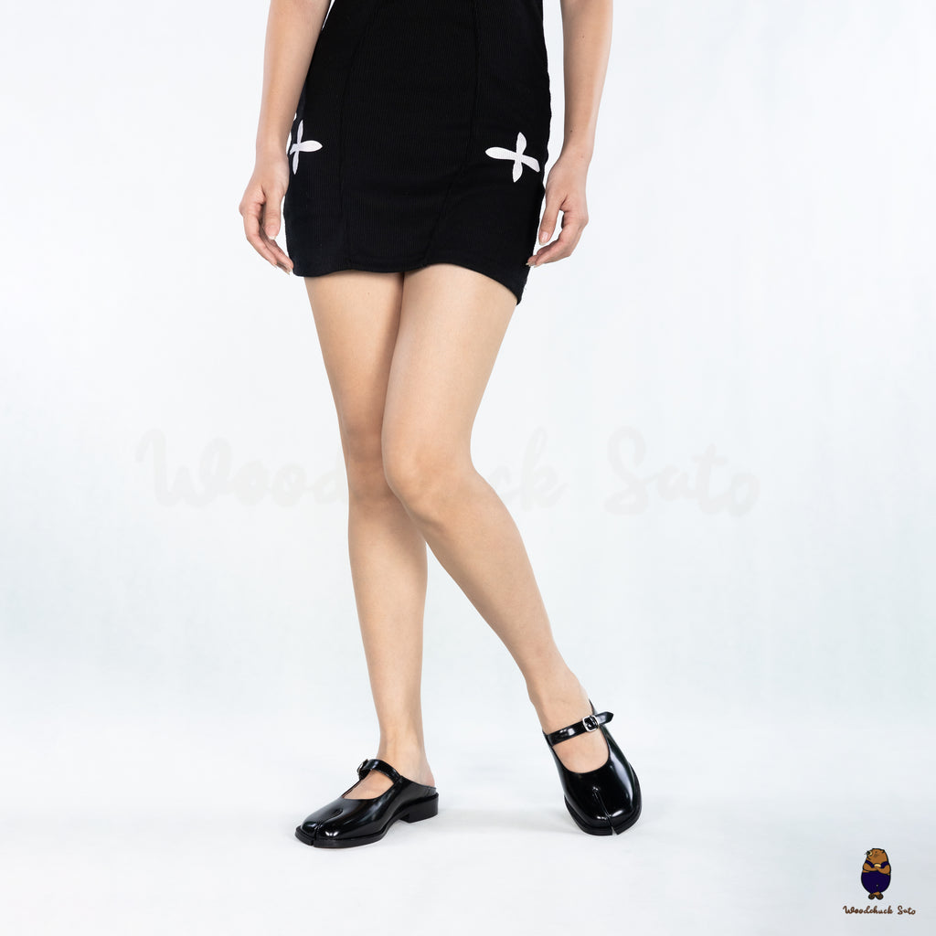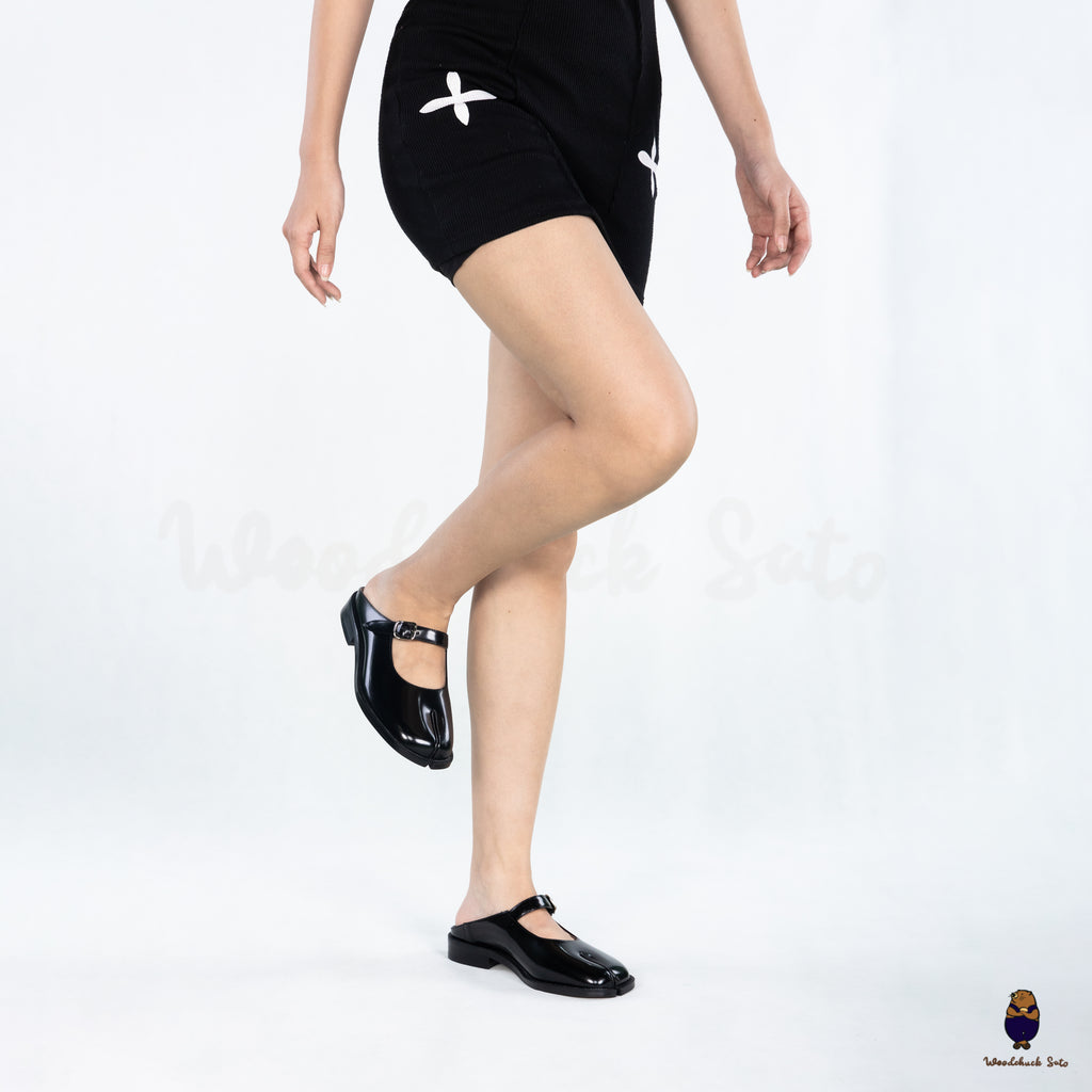 A bold reinterpretation of the Mary Jane, these mules are crafted in edge-beaded cowhide leather for a structured yet refined finish. The open-back design offers easy slip-on comfort, while the silver buckle strap secures the fit and adds detail. Completed with the iconic Tabi split toe, this pair merges artisanal craftsmanship with contemporary ease — perfect for elevating everyday wear.