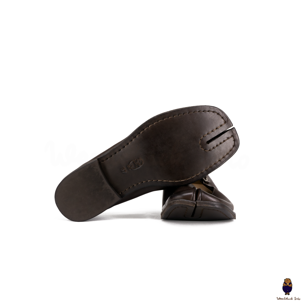 A timeless silhouette with a distinctive twist. These Tabi Mary Jane shoes are crafted from premium horse leather, known for its strength, refined shine, and ability to age gracefully. The warm brown tone highlights the natural grain of the leather, while the iconic split-toe design sets them apart. A single strap with buckle fastening ensures a secure and classic fit, making them ideal for both everyday wear and elevated styling.