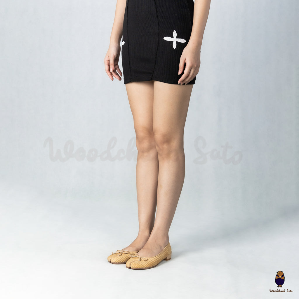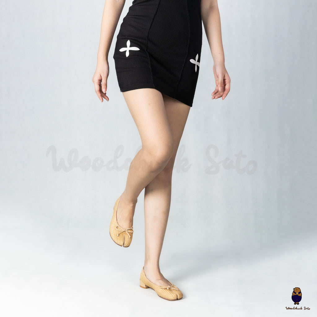 WoodchuckSato Nude PP Straw Woven Tabi Flats with Bow
