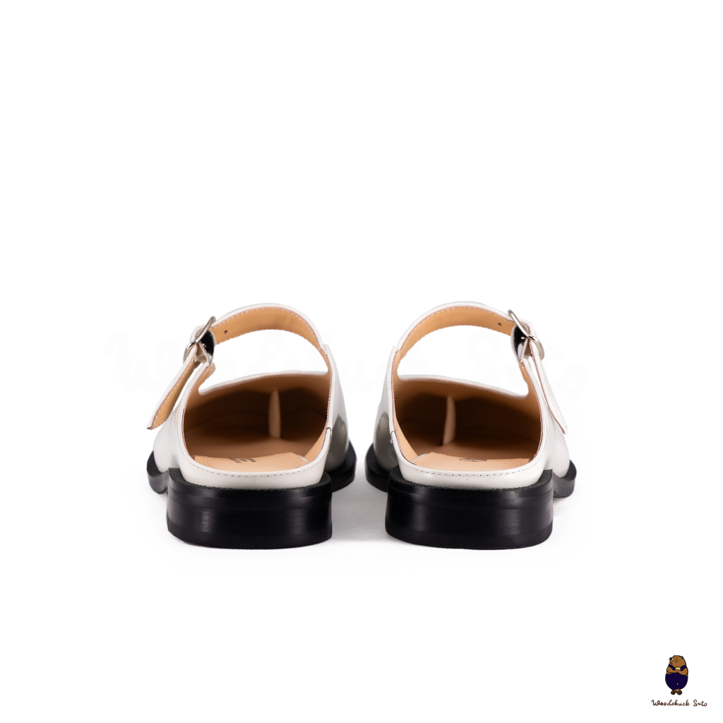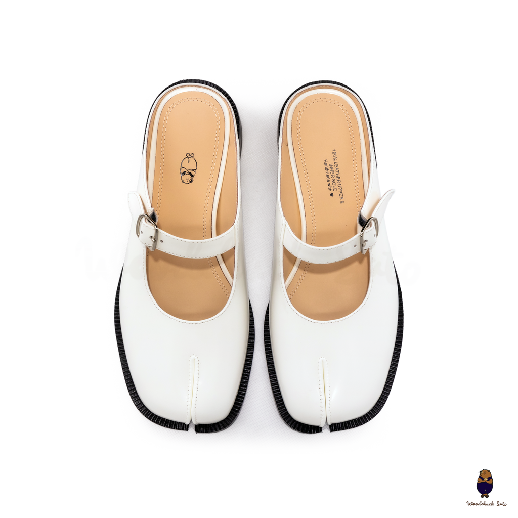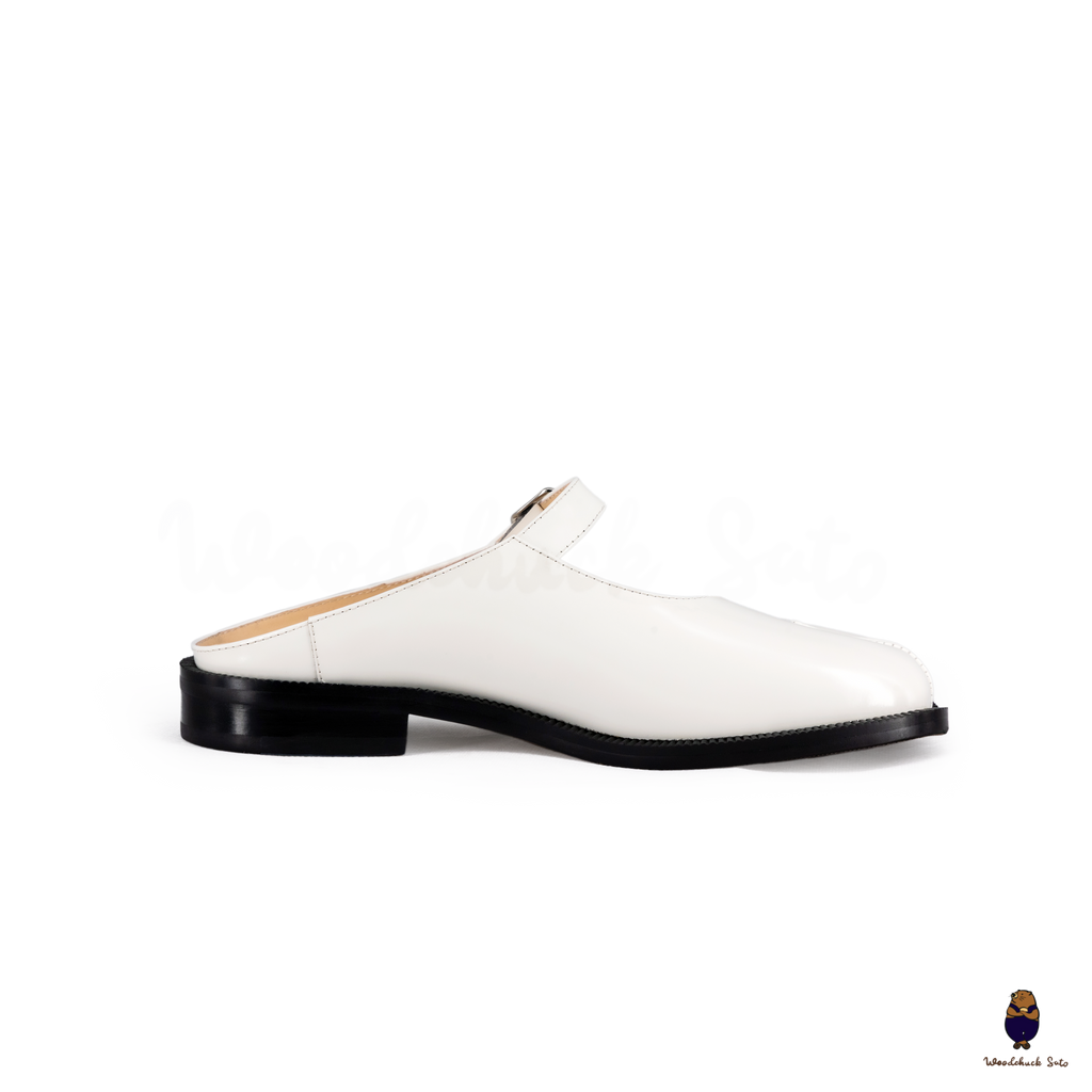 WoodchuckSato White Edge-Beaded Cowhide Leather Tabi Mary Jane Mules