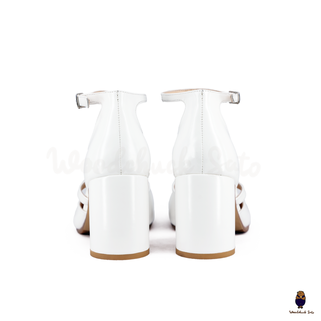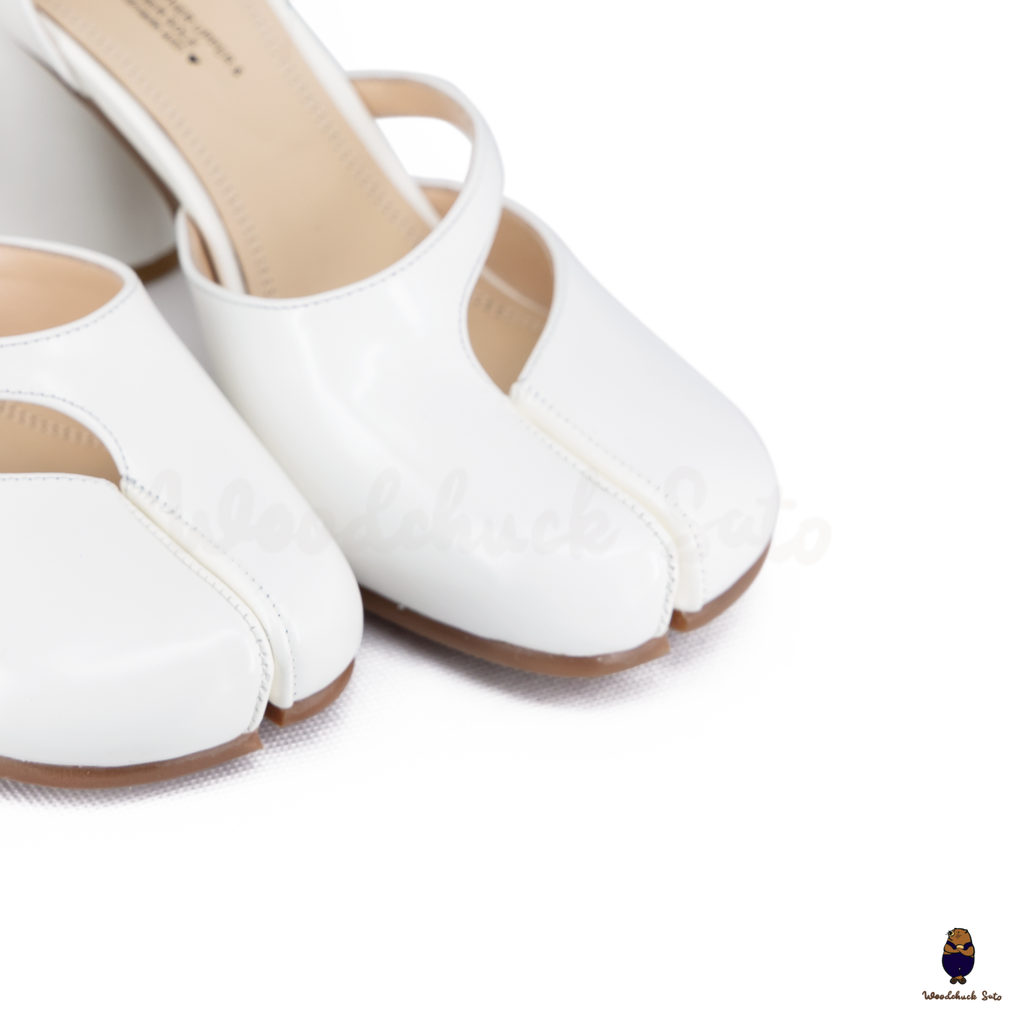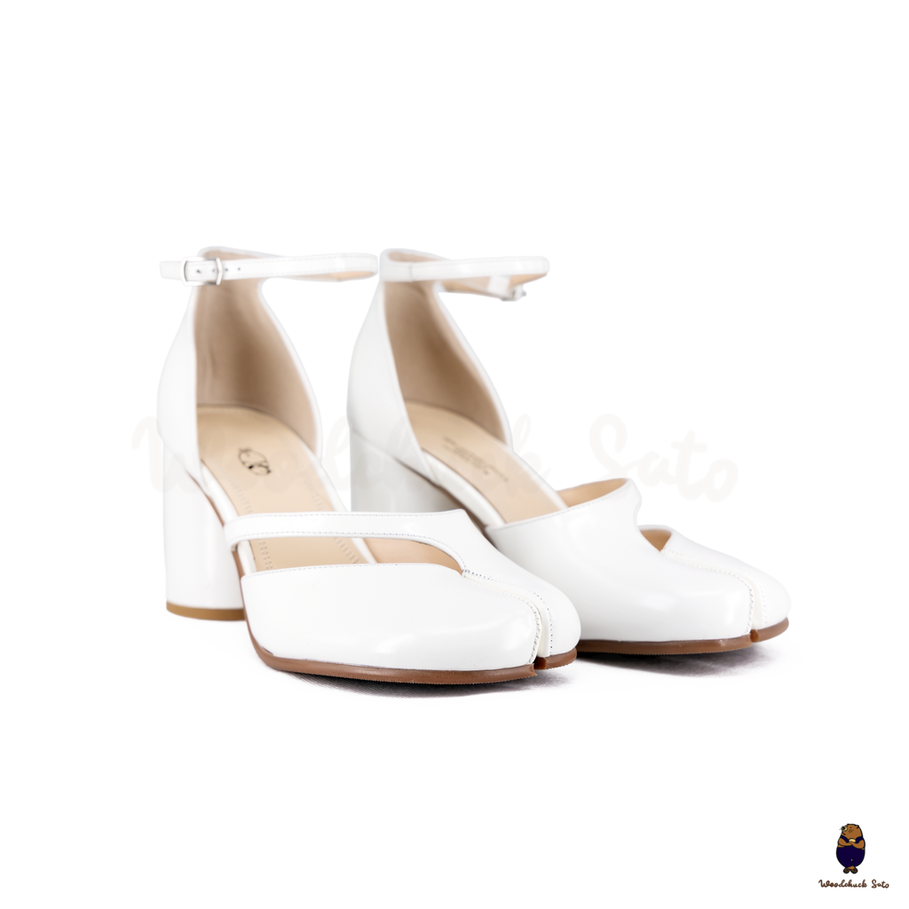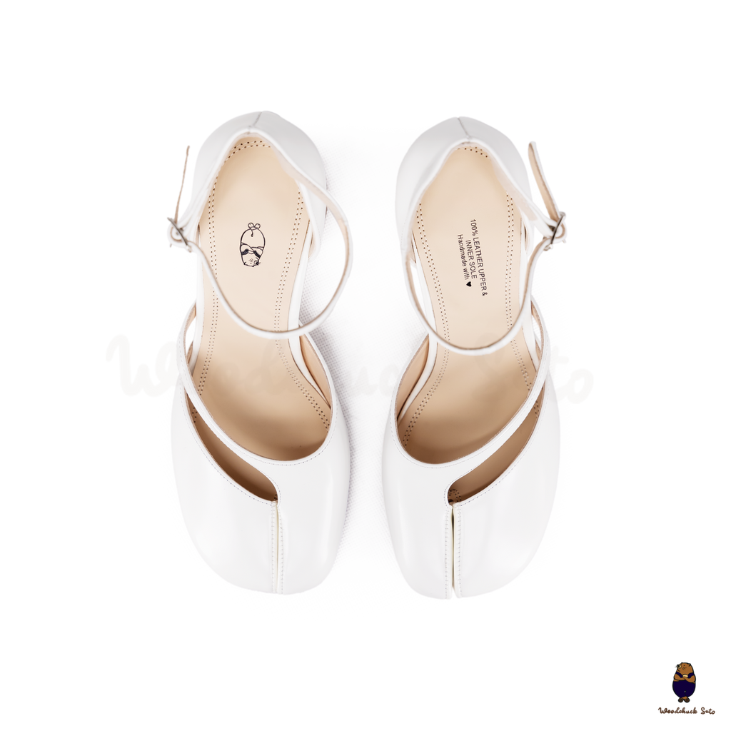 Step into sleek sophistication with the white Leather Tabi Ankle Strap Block Heels. Crafted from premium cow leather, this design combines the iconic split-toe Tabi silhouette with a delicate ankle strap for a secure finish. The 8cm block heel delivers the perfect balance of elegance and comfort, making these heels a versatile choice for workdays, evenings out, or special occasions.