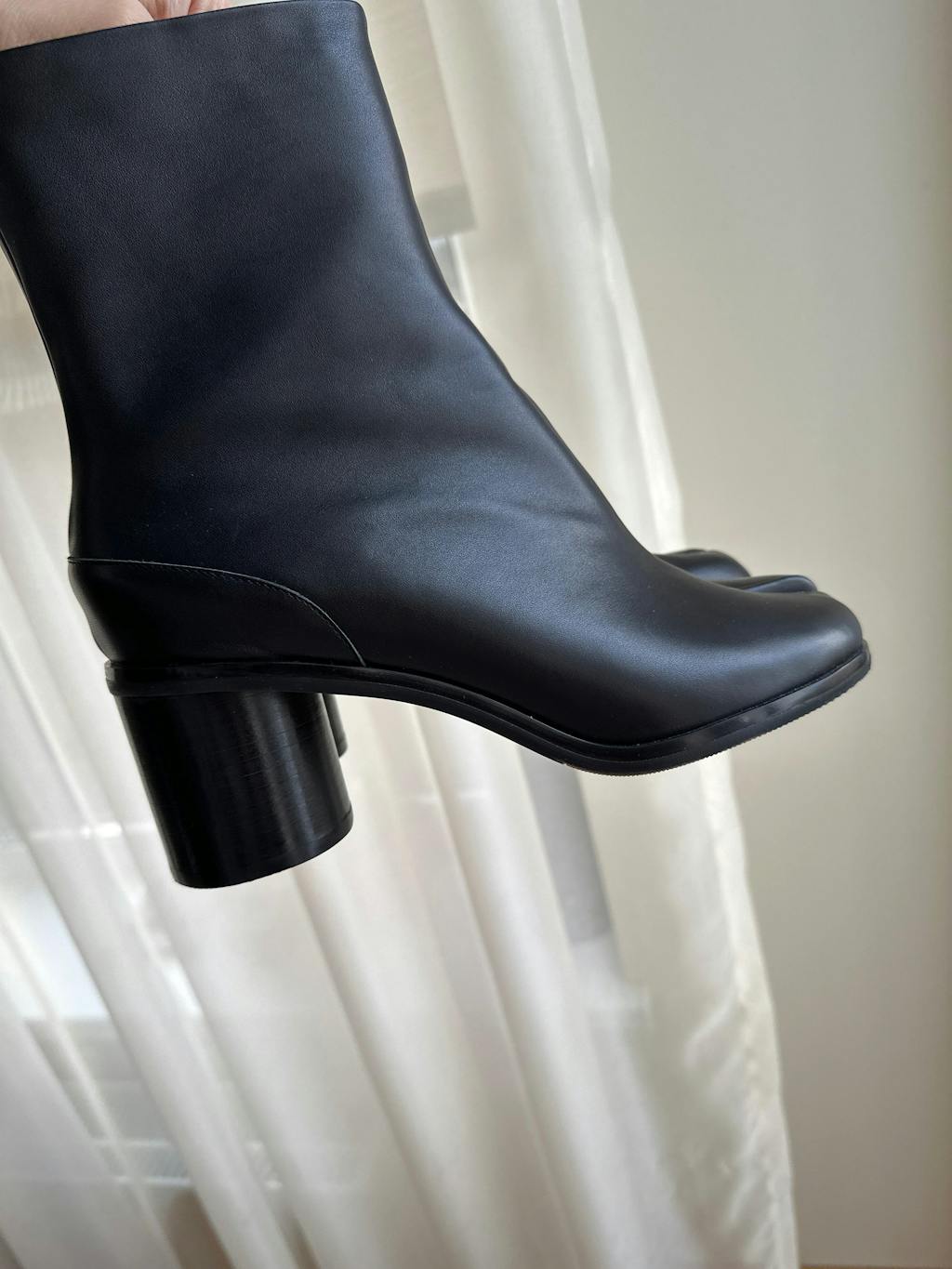 Black Cow Leather Tabi Split-toe Boots 6 cm Heel