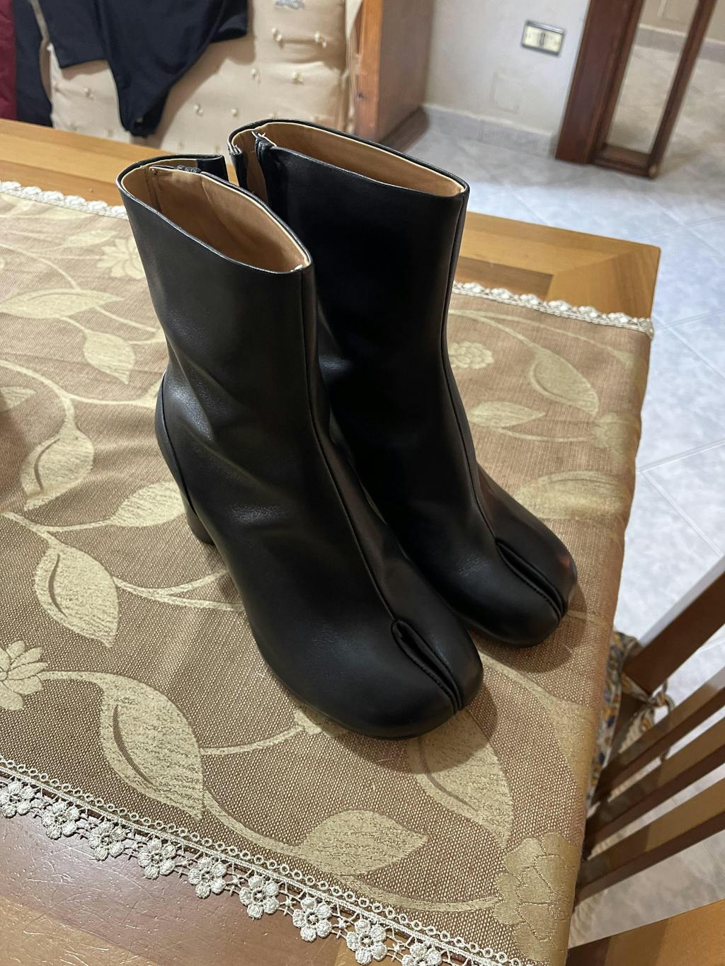 Crafted from smooth cow leather, these Tabi ankle boots bring timeless craftsmanship to a bold silhouette. The signature split-toe design is paired with a sleek, minimalist shaft and a sturdy 8 cm block heel, offering both height and stability. Durable yet refined, this pair balances everyday practicality with statement-making edge — ideal for styling with tailored trousers, dresses, or modern layered looks.
