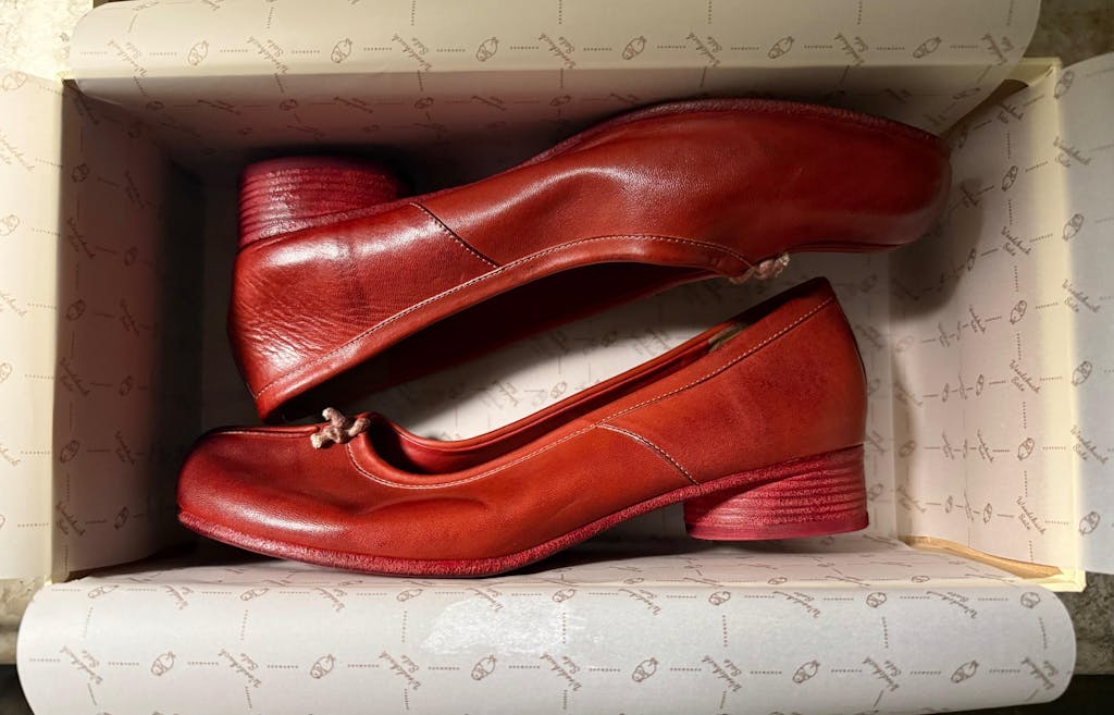 Vintage Red Horse Leather Tabi Split Toe 3cm Mule Heels