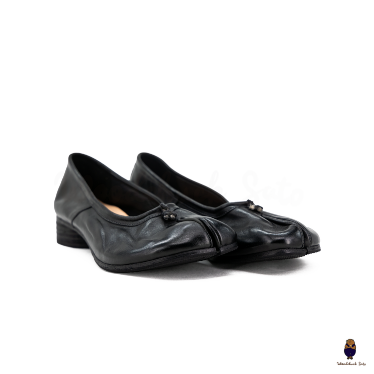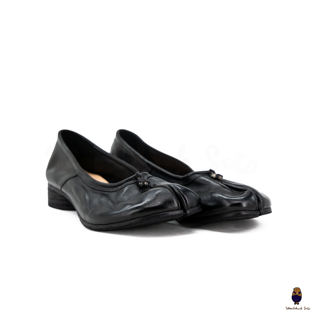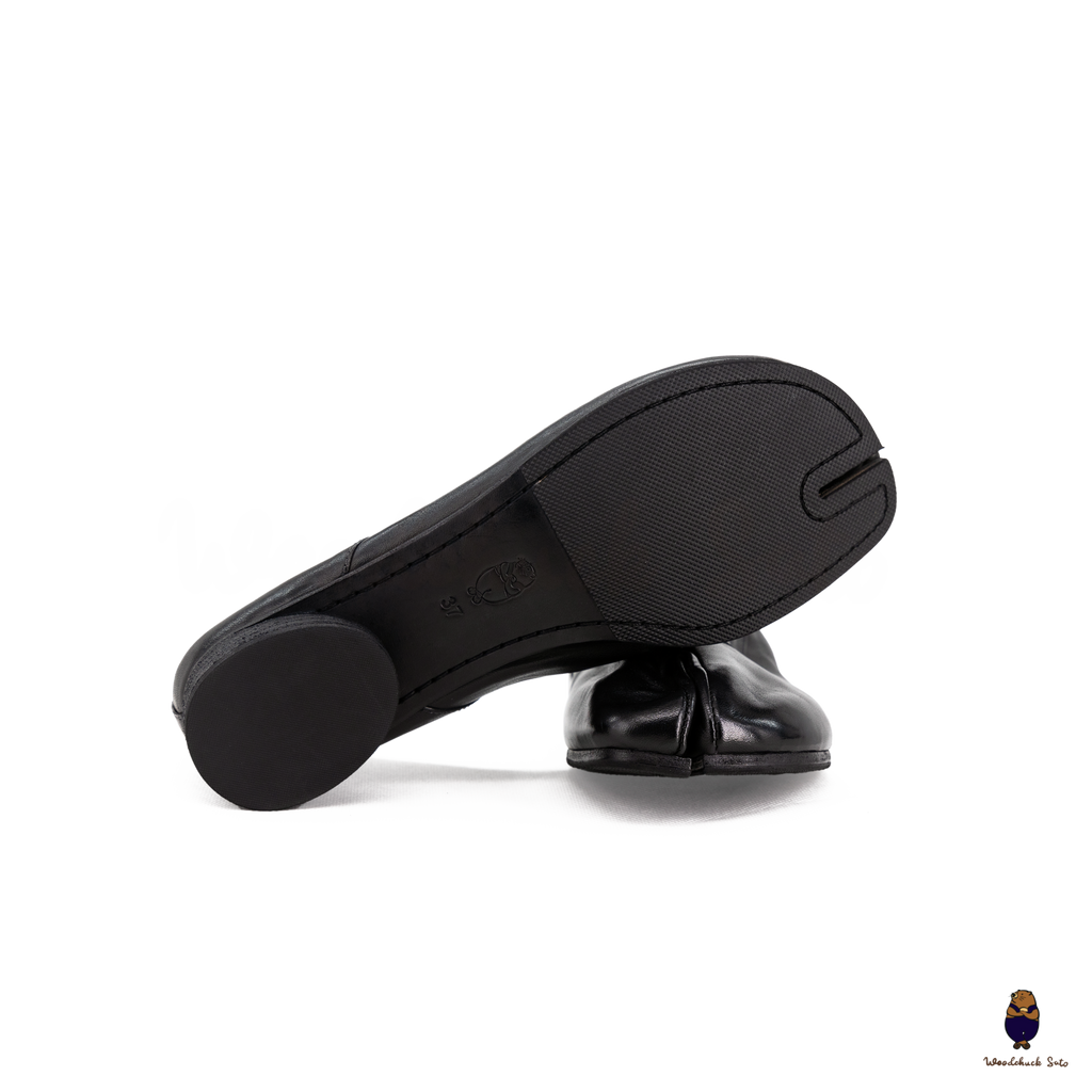 The WoodchuckSato Horse Leather Tabi Heels showcase timeless craftsmanship with a bold edge. Made from 100% genuine horse leather, these shoes offer a naturally robust yet supple texture that develops a rich patina over time, making each pair uniquely personal to its wearer.ย The signature Tabi split-toe design blends tradition with modern style, while the 3cm block heel provides subtle lift and all-day comfort. The interior is carefully lined for a smooth fit, complemented by a durable sole built for long-lasting wear.