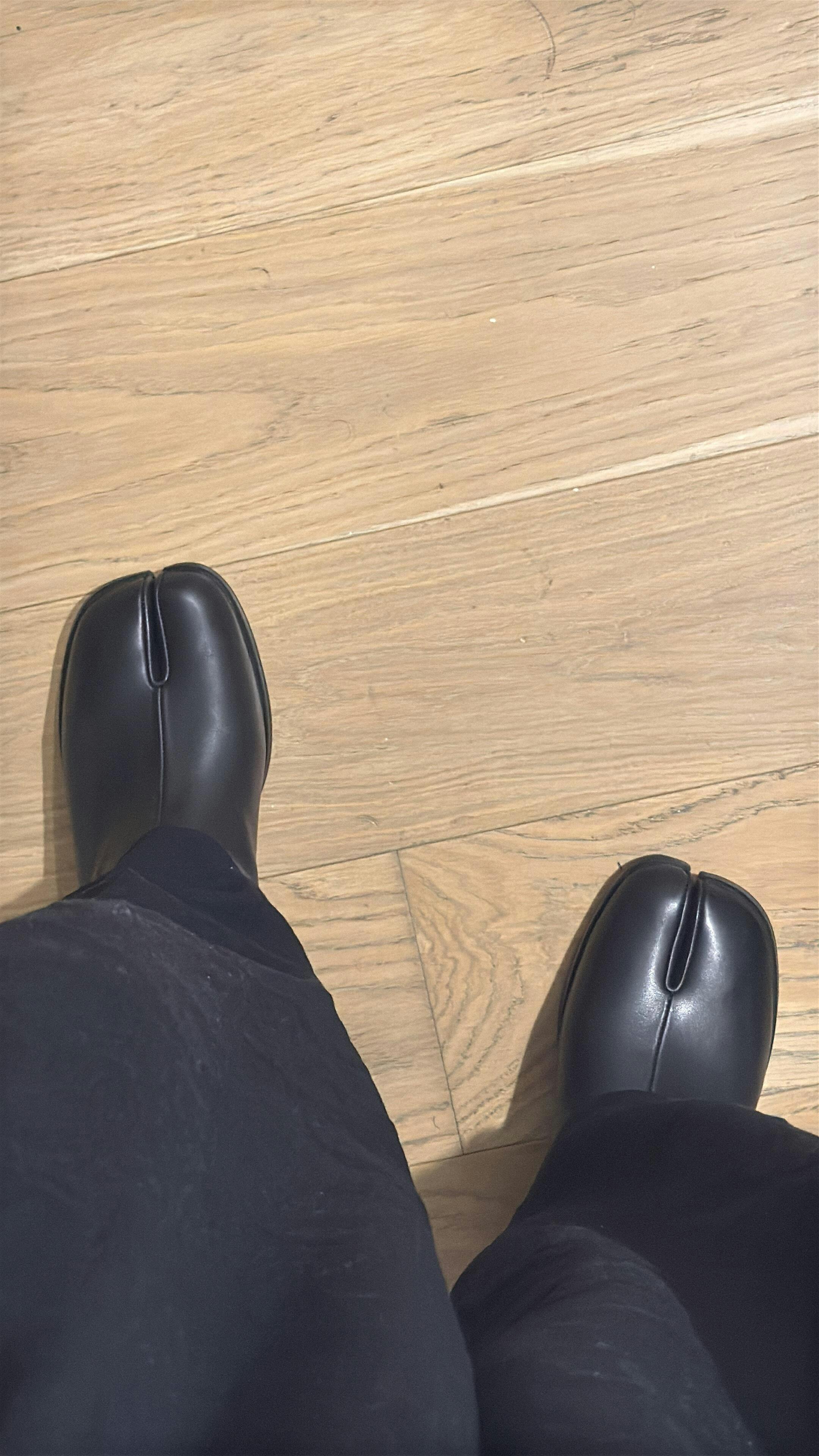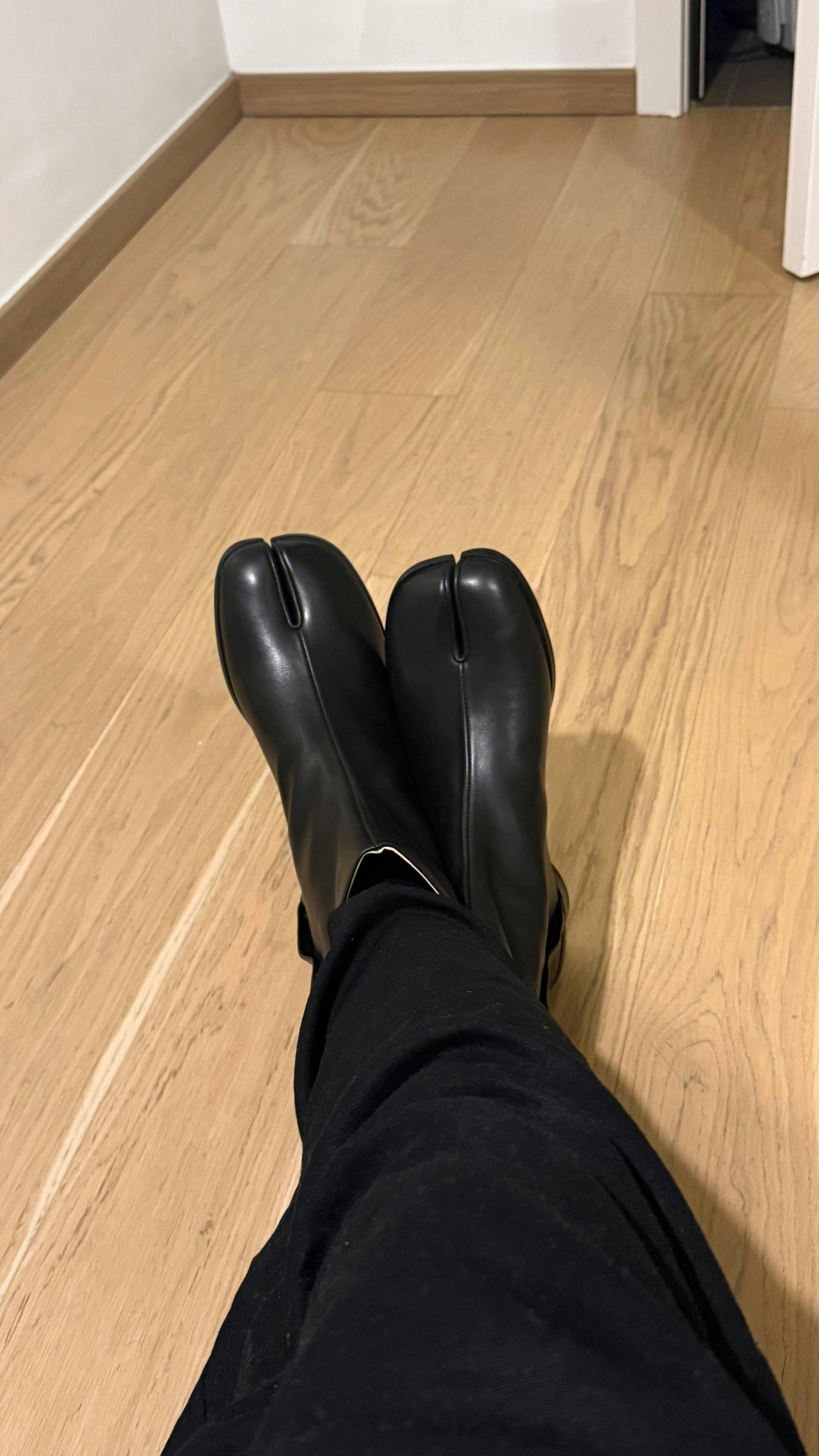 Crafted from smooth cow leather, these Tabi ankle boots offer a refined take on the iconic split-toe silhouette. Designed with a sturdy 3 cm stacked heel, they provide a subtle lift while maintaining everyday comfort. The ankle-high cut and clean side profile create a sleek line, making them easy to pair with cropped trousers or layered skirts. Minimal stitching keeps the focus on the natural grain of the leather, while the low heel makes them a versatile option for both casual wear and elevated styling.