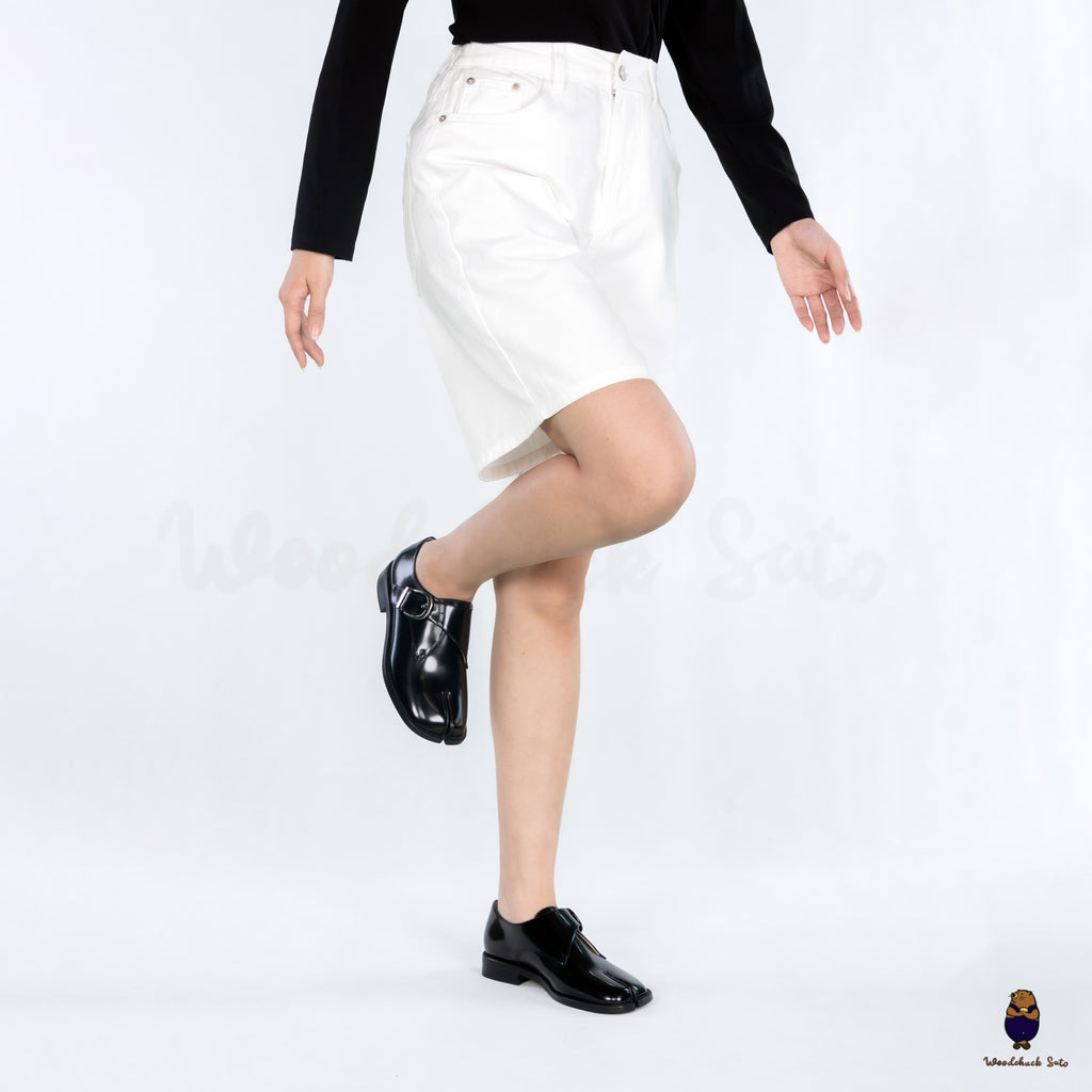 These Tabi monk strap shoes are crafted in edge-beaded cowhide leather, a material prized for its natural grain and refined structure. The subtle sheen and edge detailing highlight the clean lines of the split toe, while the wide silver buckle adds a bold finishing touch. Balanced on a sleek sole, they embody both durability and sophistication, making them a versatile choice for formal and everyday styling.