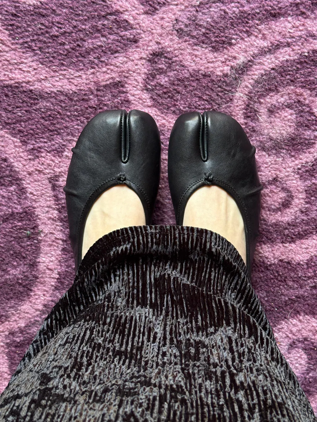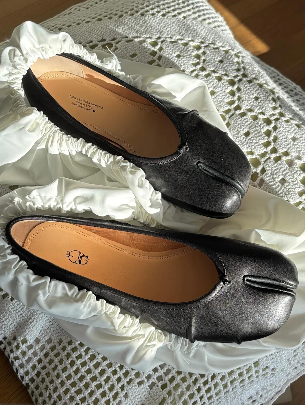 Classic Black Leather Split-Toe Tabi Fold Ballet Ballerina Flats