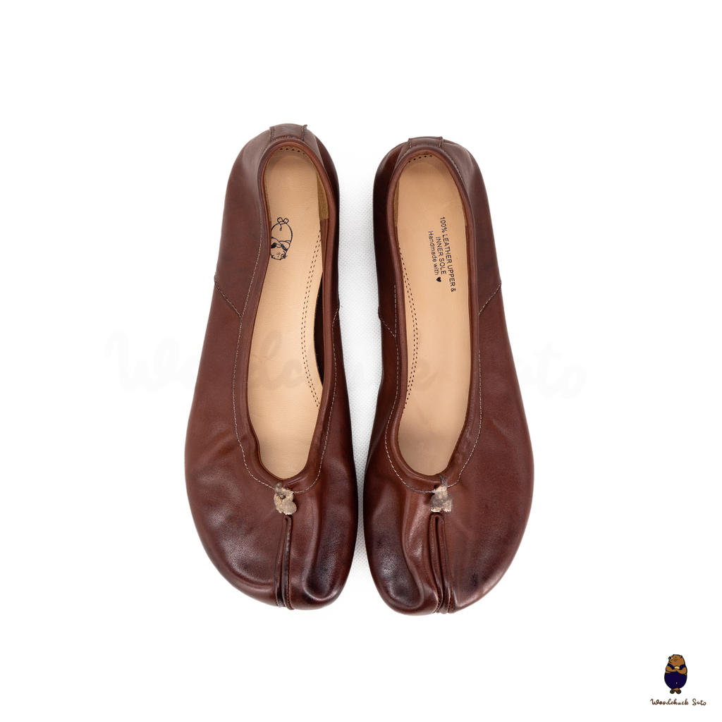 WoodchuckSato Mahogany Brown Horse Leather Tabi 3cm Heels