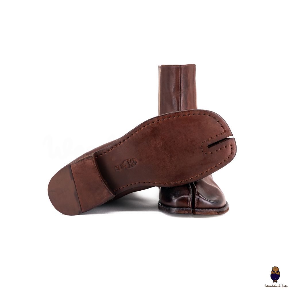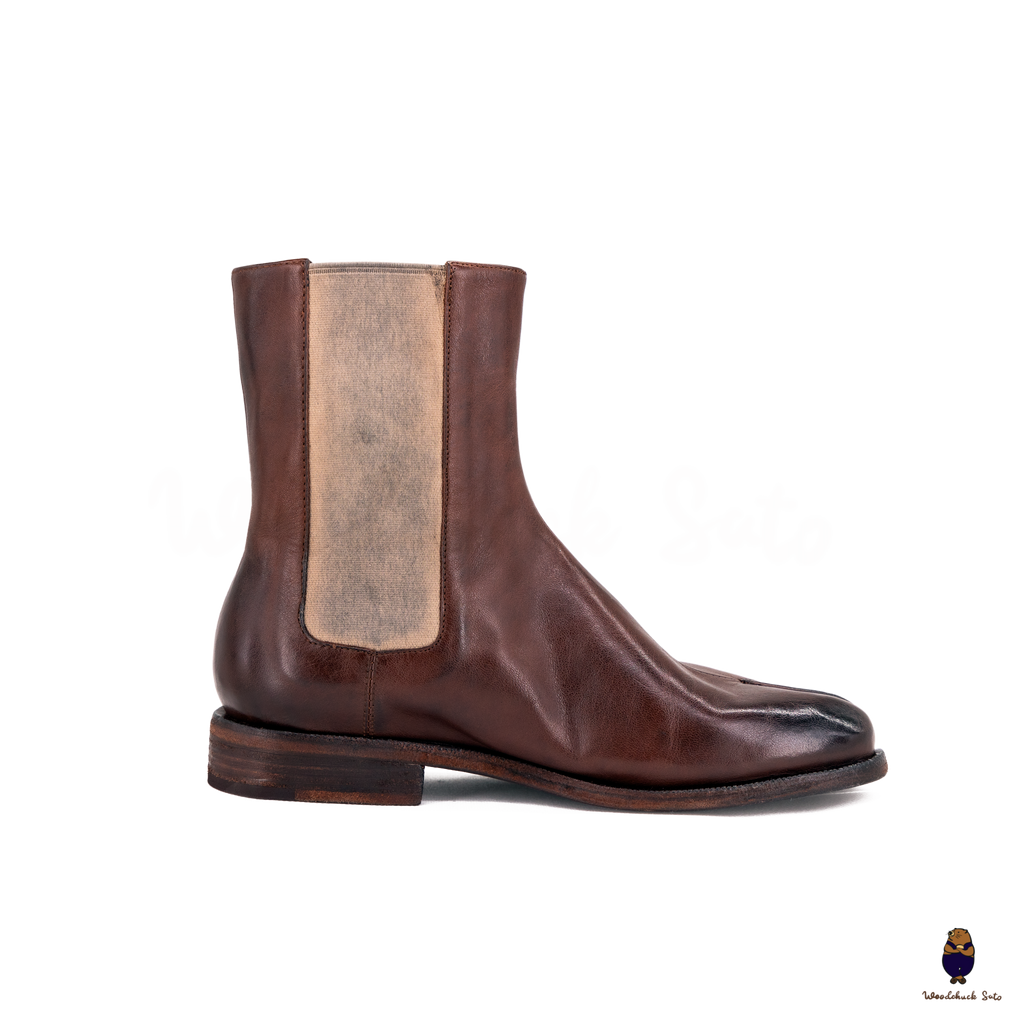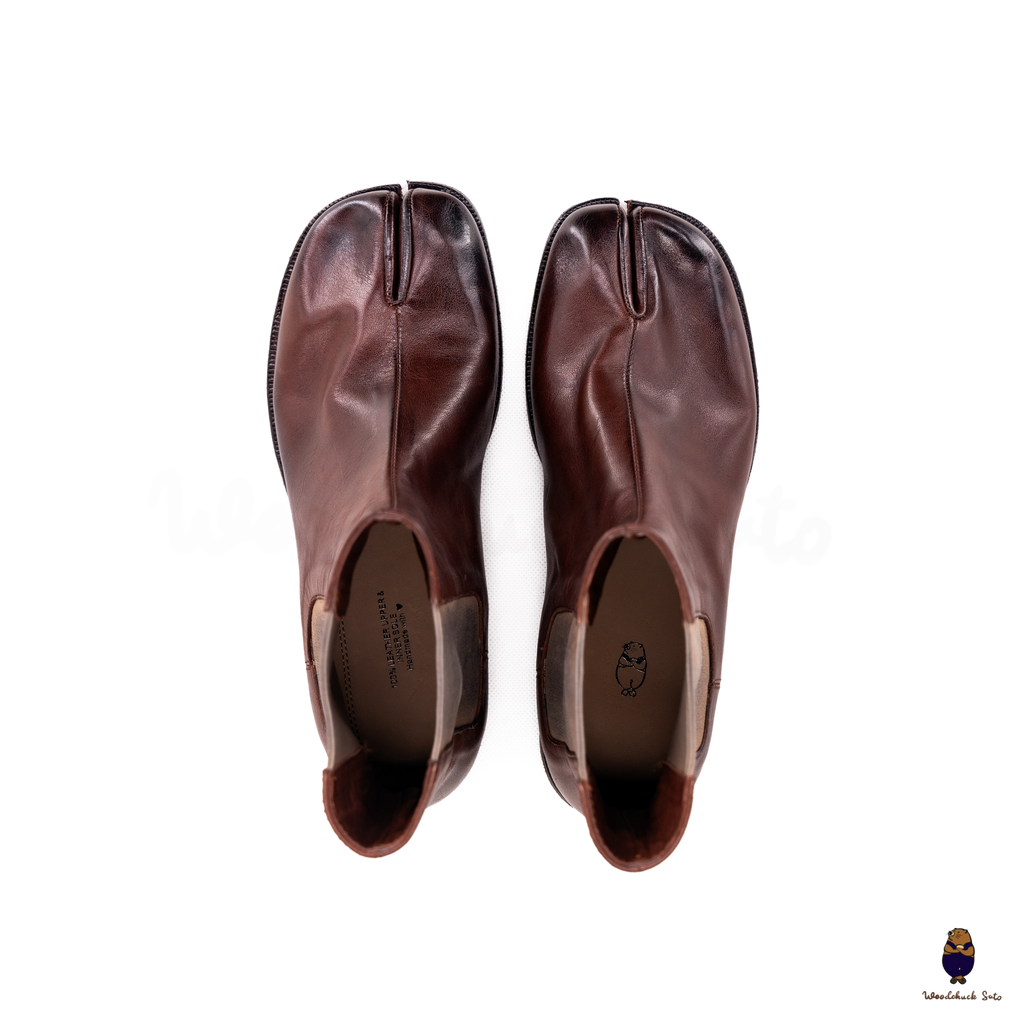 These Tabi Chelsea boots are crafted from premium horsehide leather, known for its dense fiber structure and naturally rich character. Compared to cow leather, horsehide develops deeper patina over time, giving each pair a distinctive, lived-in look as it ages.