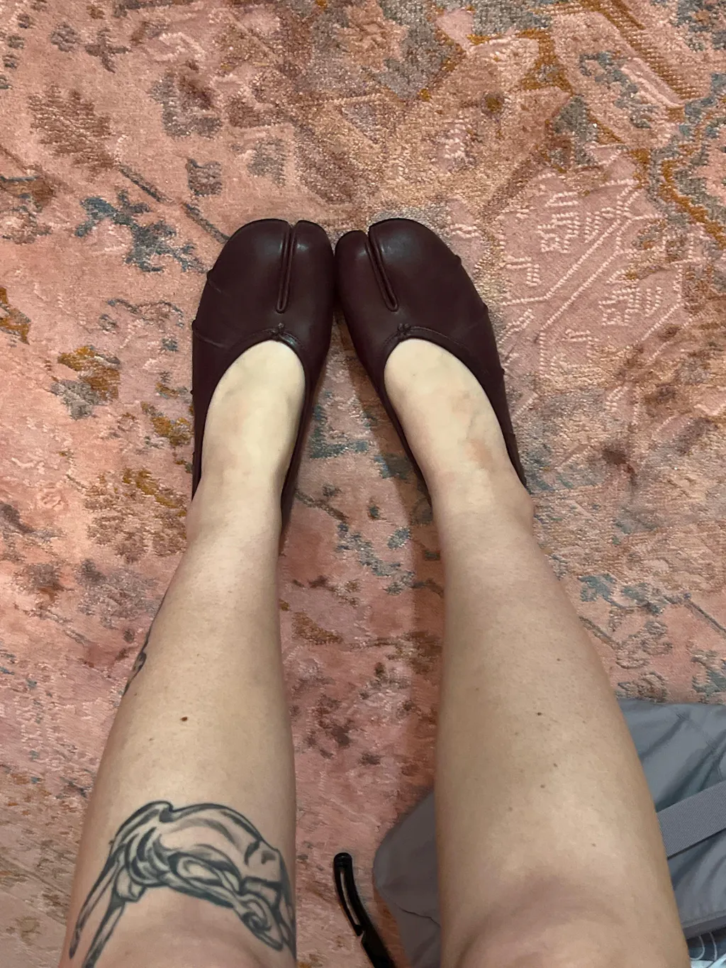 Elegant and expressive, these Tabi ballet flats are crafted from soft burgundy leather that adds warmth and richness to the silhouette. The iconic split toe anchors the design, while ruched detailing along the sides introduces gentle texture and movement. A delicate bow at the vamp finishes the look with subtle charm, balancing tradition with modern refinement. Perfect for adding a touch of individuality to everyday outfits or polished ensembles.