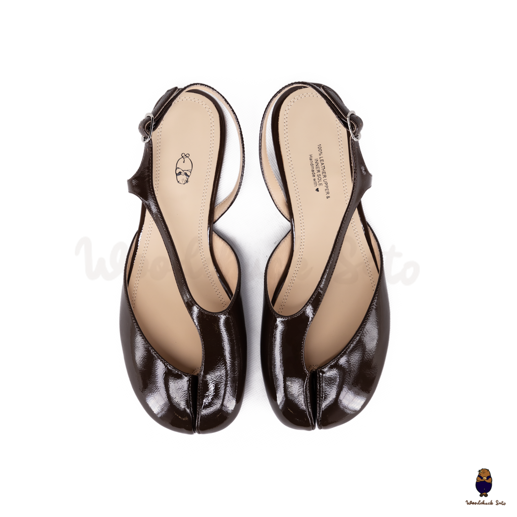 WoodchuckSato Dark Brown Film-Coated Cow Leather Tabi Slingback Sandals